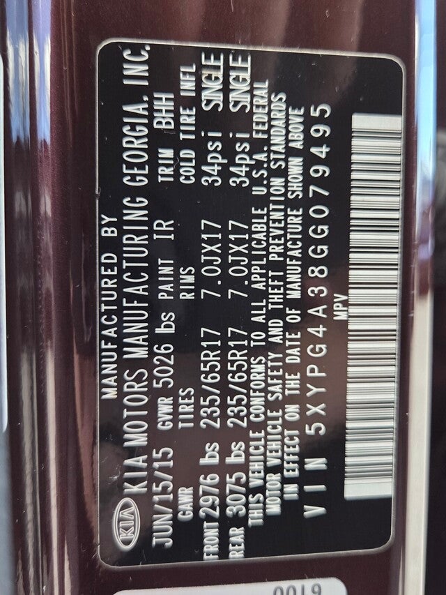 - Vehicle Name: Kia Sorento