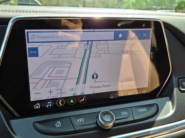 - Audio system, Chevrolet Infotainment 3 Premium system with connected Navigation, 8" diagonal HD color touchscreen, AM/FM stereo, Bluetooth® audio streaming for 2 active devices, Apple CarPlay and Android Auto capable, enhanced voice recognition, additional memory for in-vehicle apps, cloud connected personalization for select infotainment and vehicle settings. Subscription required for enhanced and connected services after trial period.