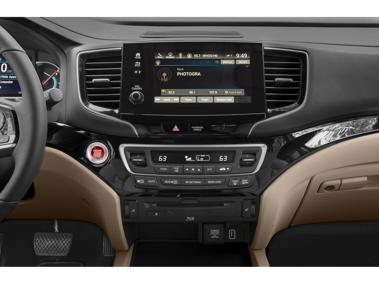 - Radio: 590-Watt Premium Audio System -inc: 10 speakers, subwoofer, 8" display audio w/high-resolution electrostatic touch-screen and customizable feature settings, 2.5-amp USB smartphone/audio interface front console (1 port), Bluetooth® HandsFreeLink, Bluetooth® streaming audio, MP3/auxiliary input jack, Radio Data System (RDS), Speed-Sensitive Volume Compensation (SVC), 2.5-amp USB charging port in center console (1 port) and 2nd row (2 ports), HondaLink, CabinControl remote compatibility, Apple CarPlay integration, Android Auto integration, SMS text message function (Compatible w/select phones w/Bluetooth®, Your wireless carrier's rate plans apply, State or local laws may limit use of texting feature, Only use texting feature when conditions allow you to do so safely.), SiriusXM radio (SiriusXM services require a subscription after any trial period, If you decide to continue your SiriusXM service at the end of your trial subscription, the plan you choose will automatically renew and bill at then-current rates until you call SiriusXM at 1-866-635-2349 to cancel, See our customer agreement for complete terms at www.siriusxm.com, Fees and programming subject to change, XM satellite service is available only to those at least 18 years and older in the 48 contiguous United States and D.C, 2019 Sirius XMRadio Inc, Sirius, XM and all related marks and logos are trademarks of SiriusXM Radio Inc.), HD Radio, CabinTalk in-car PA system through headphones, HondaLink subscription services (HondaLink subscription services come w/complimentary trials of security for 1 year and a remote/concierge trial for 3 months, Enrollment is required to access the remote/concierge trial and to access certain features of security, At the end of each trial period, purchase of a subscription is required to continue the respective services.), Wi-Fi hotspot capability (Requires AT&T data plan.) and multi-zone audio