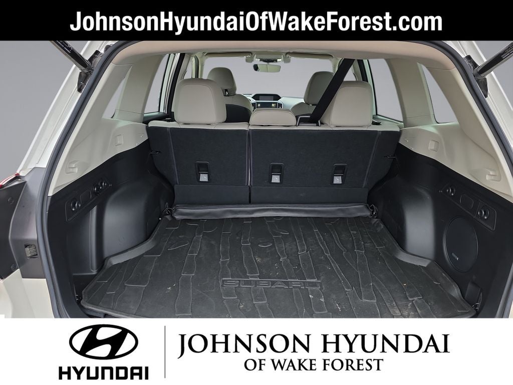 3.70 Axle Ratio, 4-Wheel Disc Brakes, 6 Speakers, ABS brakes, Air Conditioning, All-Weather Floor Liners, Alloy wheels, AM/FM radio: SiriusXM, Audio Sys & Driver Assist Tech & Htd Steer Wheel, Auto High-beam Headlights, Auto-Dimming Exterior Mirror w/Approach Lighting, Auto-Dimming Mirror w/Compass & HomeLink, Automatic temperature control, Brake assist, Bumpers: body-color, Cargo Net, CD player, Dome Light LED Upgrade, Driver door bin, Driver vanity mirror, Dual front impact airbags, Dual front side impact airbags, Electronic Stability Control, Emergency communication system: STARLINK Safety and Security (Subscription Required), Exterior Parking Camera Rear, Four wheel independent suspension, Front anti-roll bar, Front Bucket Seats, Front Center Armrest, Front dual zone A/C, Front fog lights, Front reading lights, Fully automatic headlights, harman kardon 576W Amp & Speaker System, Heated door mirrors, Heated Front Bucket Seats, Heated front seats, Heated Steering Wheel, Illuminated entry, Knee airbag, Leather Shift Knob, Low tire pressure warning, Navigation System, Occupant sensing airbag, Outside temperature display, Overhead airbag, Overhead console, Panic alarm, Passenger door bin, Passenger vanity mirror, Perforated Leather-Trimmed Upholstery, Popular Package #3, Power door mirrors, Power driver seat, Power Liftgate, Power moonroof: Panoramic, Power steering, Power windows, Radio data system, Radio: Subaru Starlink 8.0 Multimedia Nav System, Radio: Subaru Starlink 8.0 Multimedia Plus System, Rear anti-roll bar, Rear Bumper Cover, Rear seat center armrest, Rear window defroster, Rear window wiper, Remote keyless entry, Reverse Automatic Braking System (RAB), Roof rack: rails only, Security system, Speed control, Speed-sensing steering, Split folding rear seat, Spoiler, STARLINK/Apple CarPlay/Android Auto, Steering wheel mounted audio controls, Tachometer, Telescoping steering wheel, Tilt steering wheel, Traction control, Trip computer, Turn signal indicator mirrors, Variably intermittent wipers, Wheels: 18 x 7.0J Black Machine Finish Alum Alloy.