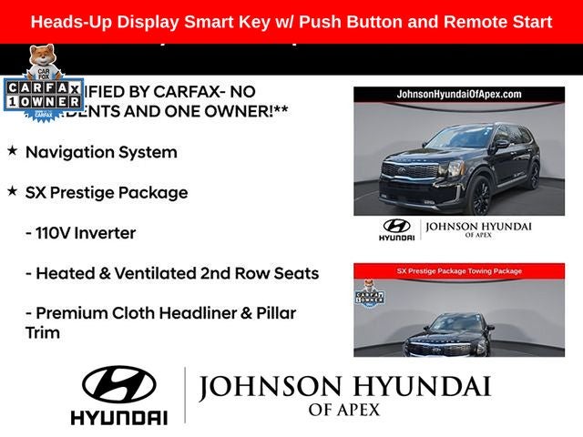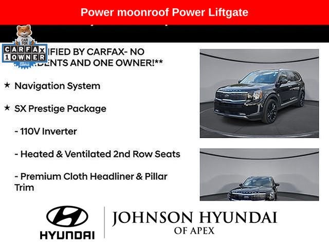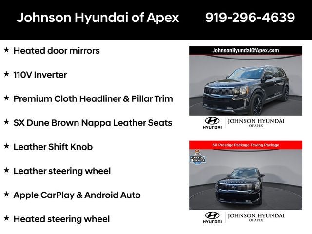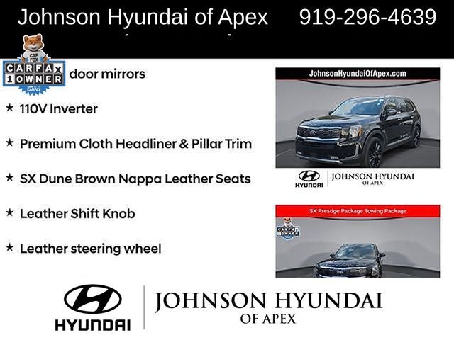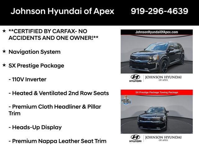 **CERTIFIED BY CARFAX- NO ACCIDENTS AND ONE OWNER!**, 110V Inverter, Apple CarPlay & Android Auto, Auto-dimming Rear-View mirror, Automatic temperature control, Front dual zone A/C, Front fog lights, Fully automatic headlights, Garage door transmitter: HomeLink, Heads-Up Display, Heated & Ventilated 2nd Row Seats, Heated & Ventilated Front Bucket Seats, Heated door mirrors, Heated steering wheel, Leather Shift Knob, Leather steering wheel, Memory seat, Navigation System, Power Liftgate, Power moonroof, Premium Cloth Headliner & Pillar Trim, Premium Nappa Leather Seat Trim, Radio: AM/FM/SIRIUS Premium Audio, Rain-Sensing Front Windshield Wipers, Rear air conditioning, Reclining 3rd row seat, Self Leveling Rear Suspension, Smart Key w/ Push Button and Remote Start, SX Dune Brown Nappa Leather Seats, SX Prestige Package, Telescoping steering wheel, Tow Hitch w/Harness (TOF), Towing Package, Wheels: 7.5 x 20 Black Finish Alloy.