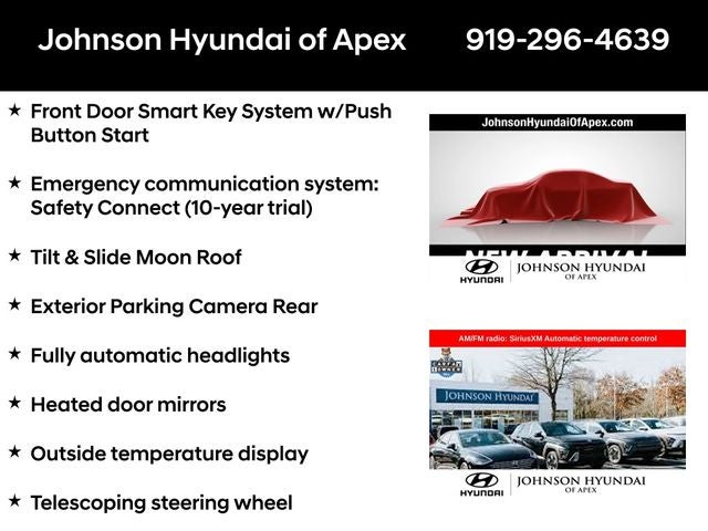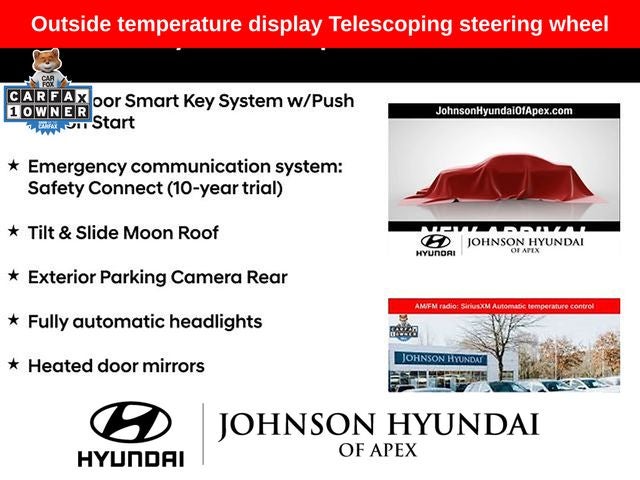 **CERTIFIED BY CARFAX- NO ACCIDENTS AND ONE OWNER!**, AM/FM radio: SiriusXM, Automatic temperature control, Convenience Package, Emergency communication system: Safety Connect (10-year trial), Exterior Parking Camera Rear, Front Bucket Seats, Front Door Smart Key System w/Push Button Start, Front dual zone A/C, Fully automatic headlights, Heated door mirrors, Outside temperature display, Power driver seat, Telescoping steering wheel, Tilt & Slide Moon Roof, Wheels: 17 5-Spoke Silver Alloy.