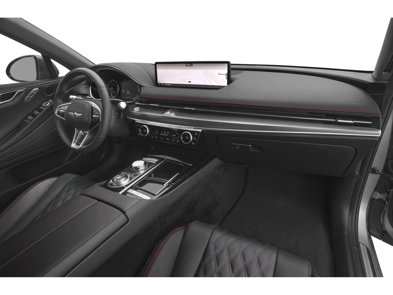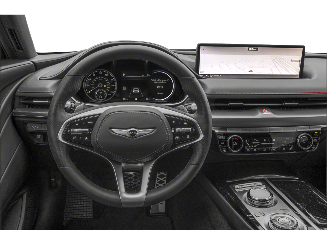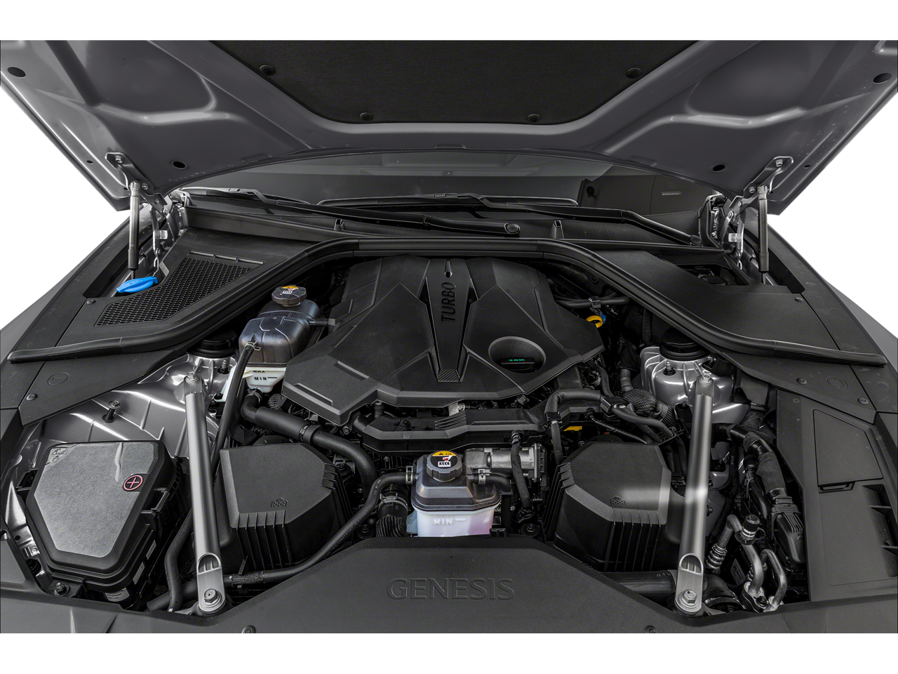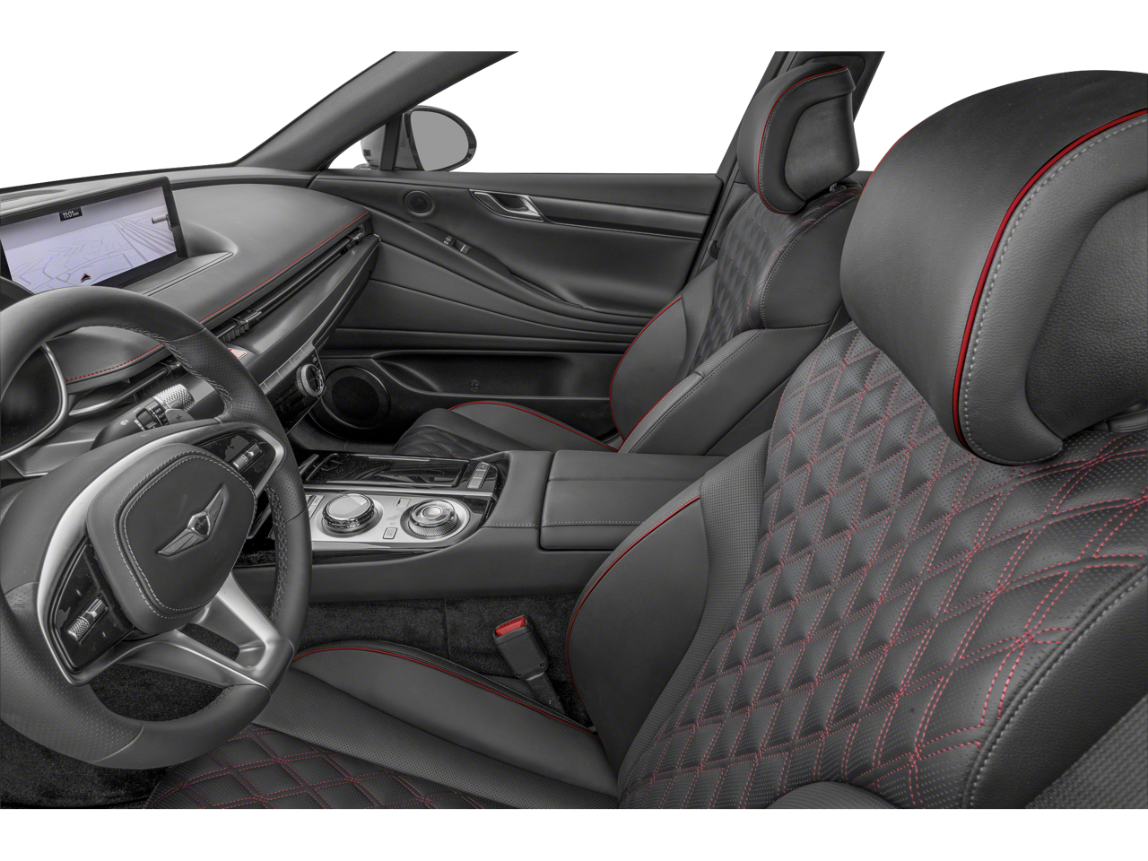 12 Speakers, 4-Wheel Disc Brakes, ABS brakes, Adaptive suspension, Air Conditioning, Alloy wheels, AM/FM radio: SiriusXM, Android Auto & Apple CarPlay, Anti-whiplash front head restraints, Auto High-beam Headlights, Auto tilt-away steering wheel, Auto-dimming door mirrors, Auto-dimming Rear-View mirror, Automatic temperature control, Bumpers: body-color, Compass, Delay-off headlights, Driver door bin, Driver vanity mirror, Dual front impact airbags, Dual front side impact airbags, Electronic Stability Control, Emergency communication system: Genesis Connected Services, Exterior Parking Camera Rear, Four wheel independent suspension, Front anti-roll bar, Front Bucket Seats, Front Center Armrest, Front dual zone A/C, Front reading lights, Fully automatic headlights, Garage door transmitter: HomeLink, Heated & Ventilated Front Bucket Seats, Heated door mirrors, Heated front seats, Heated rear seats, Heated steering wheel, Illuminated entry, Knee airbag, Leather Seating Surfaces, Leather steering wheel, Low tire pressure warning, Memory seat, Navigation System, Occupant sensing airbag, Option Group 01, Outside temperature display, Overhead airbag, Overhead console, Panic alarm, Passenger door bin, Passenger vanity mirror, Power door mirrors, Power driver seat, Power moonroof, Power passenger seat, Power steering, Power windows, Radio data system, Radio: AM/FM/HD/SiriusXM Audio System, Rain sensing wipers, Rear anti-roll bar, Rear reading lights, Rear seat center armrest, Rear side impact airbag, Rear window defroster, Remote keyless entry, Security system, Speed control, Speed-sensing steering, Speed-Sensitive Wipers, Steering wheel memory, Steering wheel mounted audio controls, Tachometer, Telescoping steering wheel, Tilt steering wheel, Traction control, Trip computer, Turn signal indicator mirrors, Variably intermittent wipers, Ventilated front seats, Wheels: 19x8.5J Fr & 19x9.5J Rr Sport Alloy.